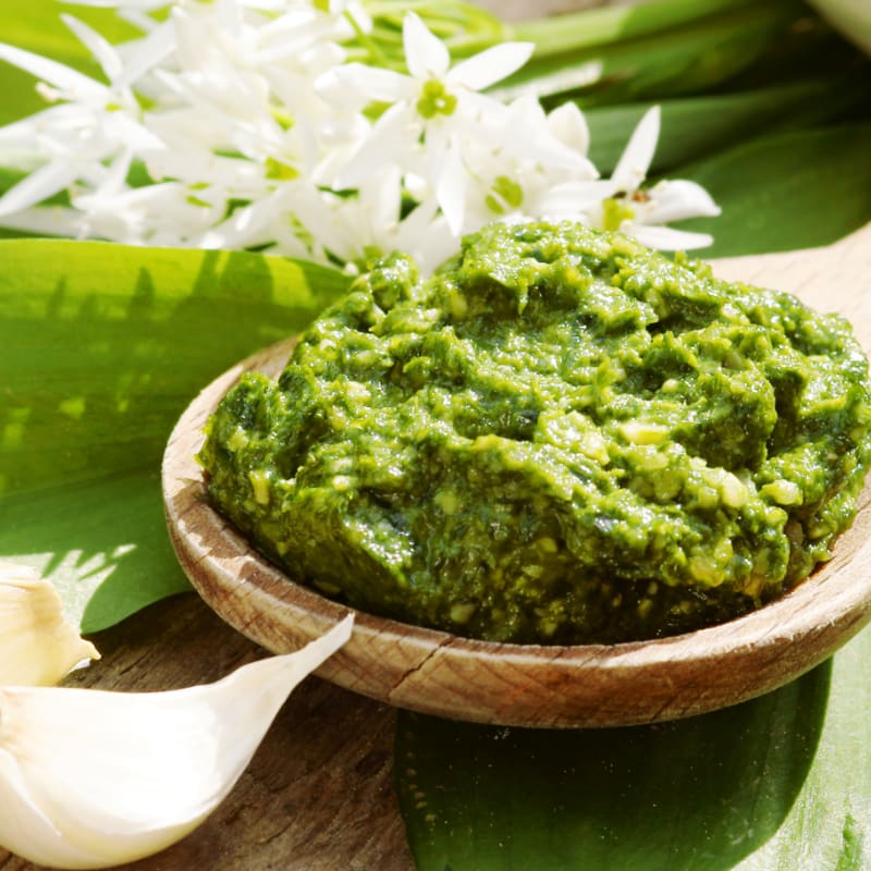 Die Knoblauchalternative Bärlauch (oder wilder Knoblauch, wie er auch genannt wird) wächst vor Allem im Frühling von März bis Mai und kündigt damit jedes Jahr den Frühling an. Das wilde Kraut findet in unserer Küche vielfältige Verwendungsmöglichkeiten, da nicht nur die Blätter, sondern alle Teile der Pflanze zum Verzehr geeignet sind. So lässt sich Bärlauch wunderbar zu Pesto, Suppe, Nudeln, Dips oder Aufstrichen verarbeiten.