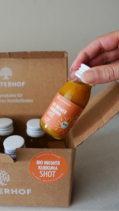 Unser Bio Ingwer Kurkuma Shot ist ein echter Geschmacks-Kick aus der Natur. Die feurige Schärfe des frischen Ingwers trifft auf die goldene Wärme des Kurkumas. Fruchtiger Apfelsaft und exotisch-süßer Ananassaft sorgen für eine angenehm frische, harmonische Süße, während eine Prise schwarzer Pfeffer das Kurkuma ergänzt.
